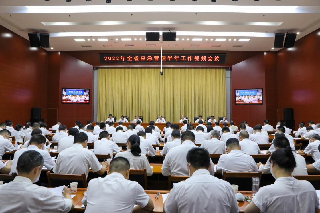 7月27日下午,省应急厅召开2022年全省应急管理半年工作视频会议,深入学习贯彻习近平总书记考察湖北重要讲话精神和省第十二次党代会精神,全面贯彻落实党中央、国务院关于应急管理决策部署和省委省政府工作要求,总结今年以来的工作,安排今年后几个月重点任务,动员全系统更好统筹发展和安全,奋力为建设全国构建新发展格局先行区贡献力量,以优异的成绩迎接党的二十大胜利召开。省应急厅党委书记、厅长胡玖明出席会议并讲话。会议由省应急厅党委委员、副厅长陈年山主持。